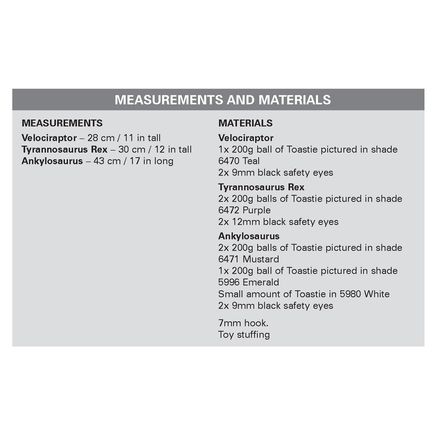 This King Cole crochet pattern leaflet, 9222 will instruct you how to knit rawrsome dinosaurs in 3 different designs, using Toastie yarn.