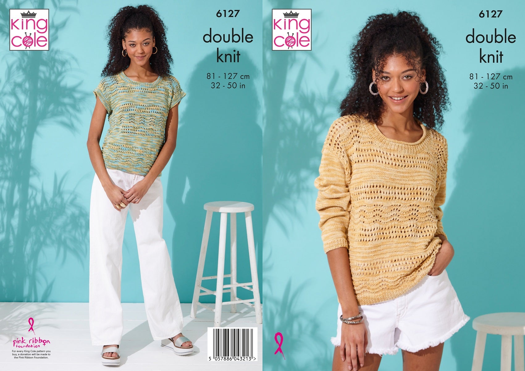 King Cole Double Knitting Pattern - Ladies Sweater & Top (6127)