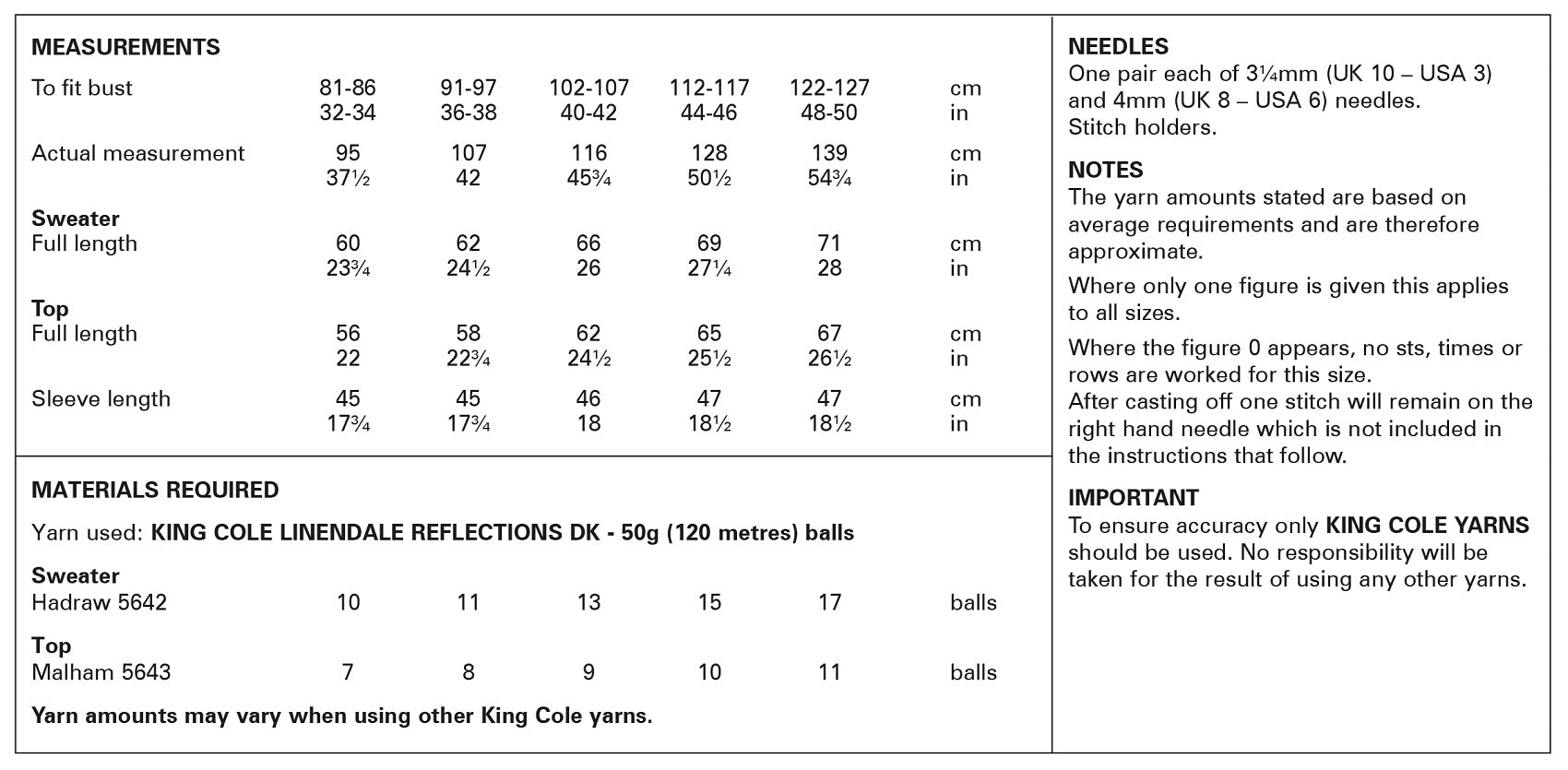 This King Cole knitting pattern is suitable for use with most King Cole double knit yarns; however, tensions may vary, and we recommend you knit a tension square before knitting the whole garment.
