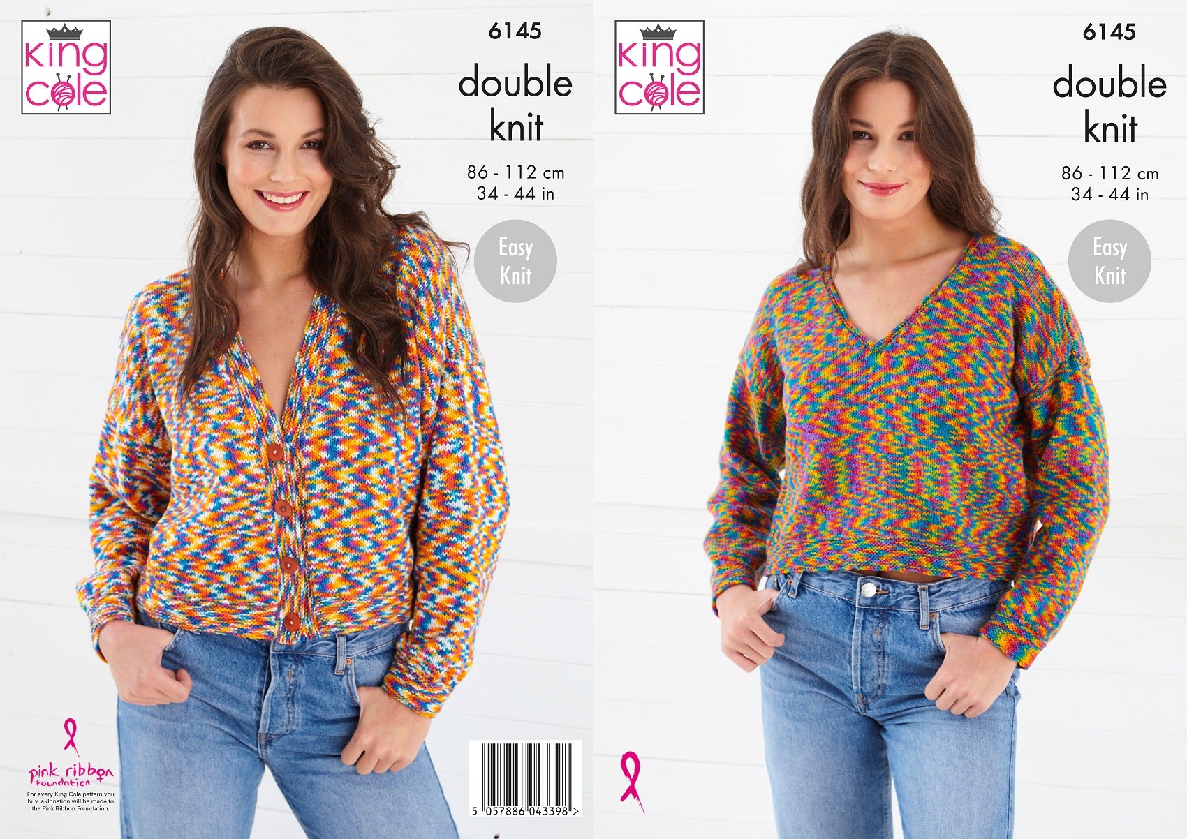 This double-knit knitting pattern leaflet (6145) by King Cole will instruct you on how to create a women's retro sweater & cardigan.