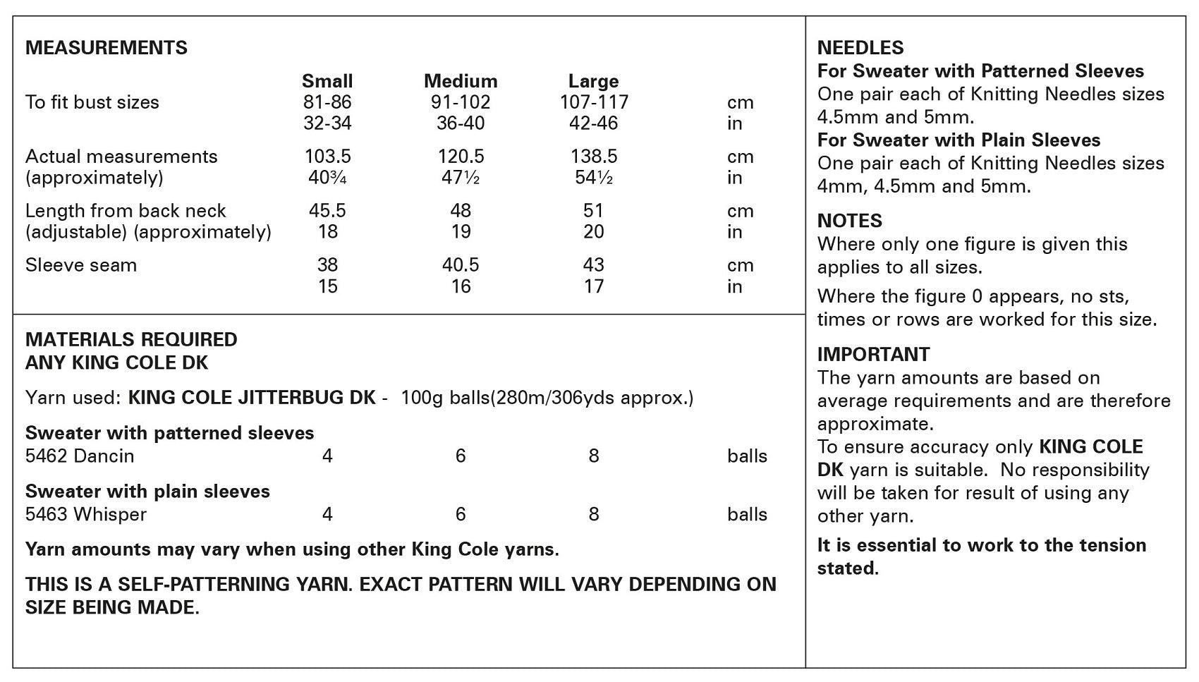 This King Cole knitting pattern is suitable for use with most King Cole double knit yarns; however, tensions may vary, and we recommend you knit a tension square before knitting the whole garment.