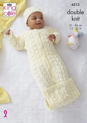 King Cole Double Knitting Pattern - Baby Jacket, Sweater Sleeping Bag & Hat (6212)