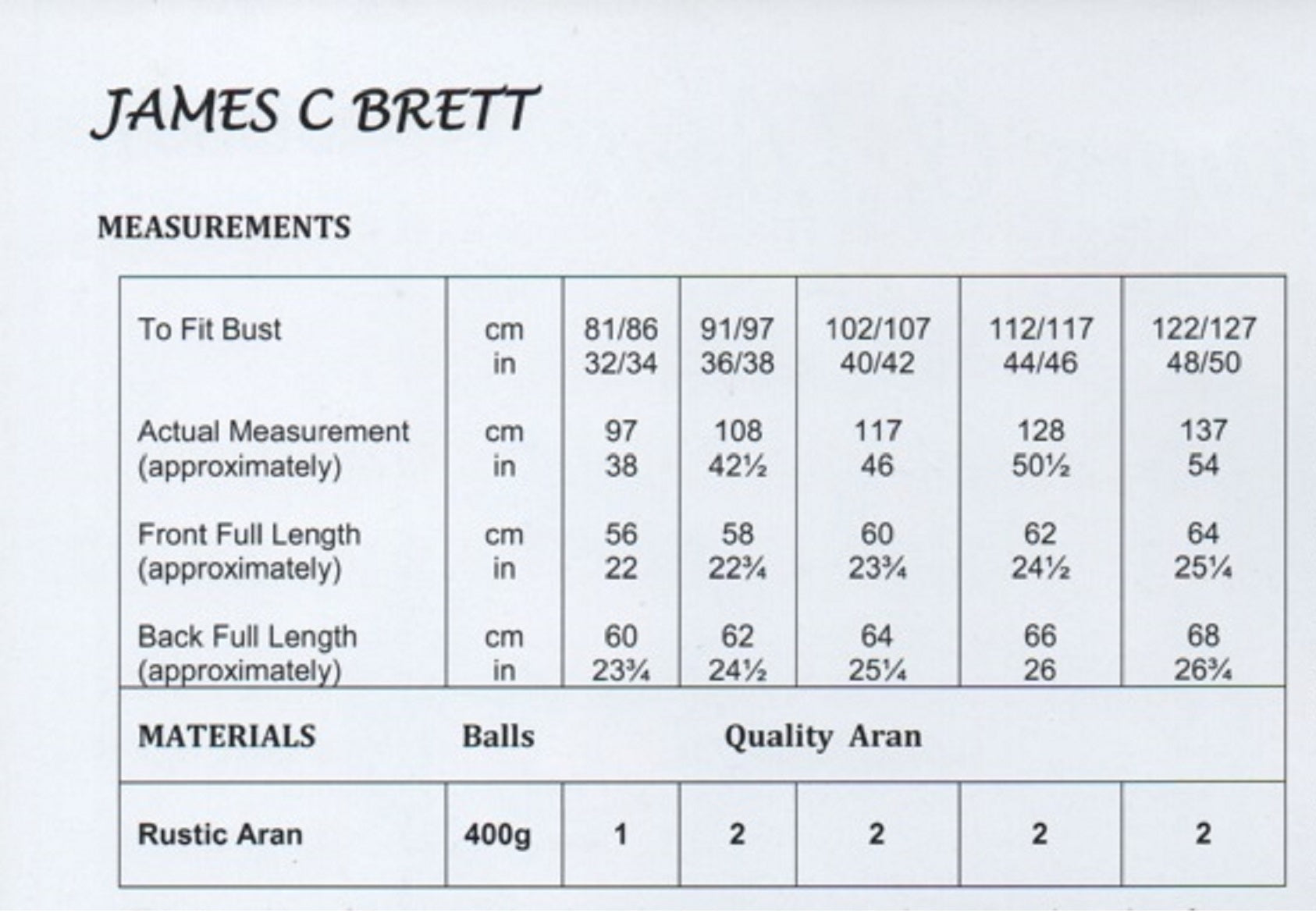 This James Brett knitting pattern is suitable for use with most Quality Aran yarns, however tensions may vary and we recommend you knit a tension square before knitting the whole garment.