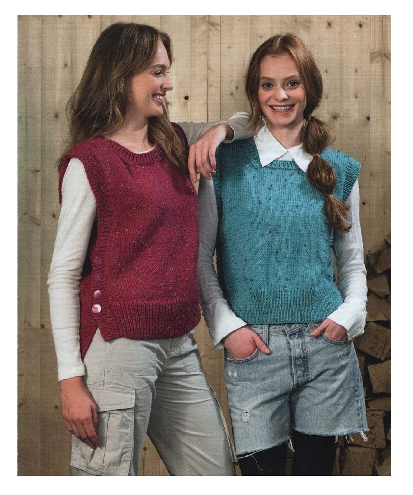This knitting pattern leaflet JB891 by James Brett will instruct you on how to knit ladies slipovers in two styles.