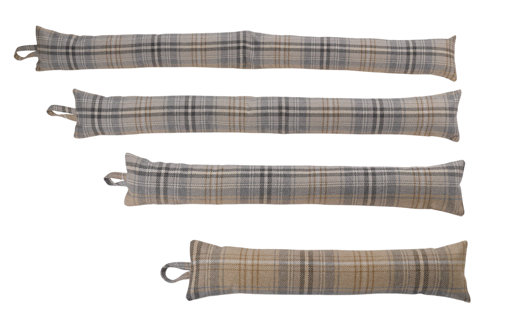 These modern check draught excluders made with a grey and natural beige checked wool effect design and are available in four different sizes to suit wider doors such as patio doors or french doors.