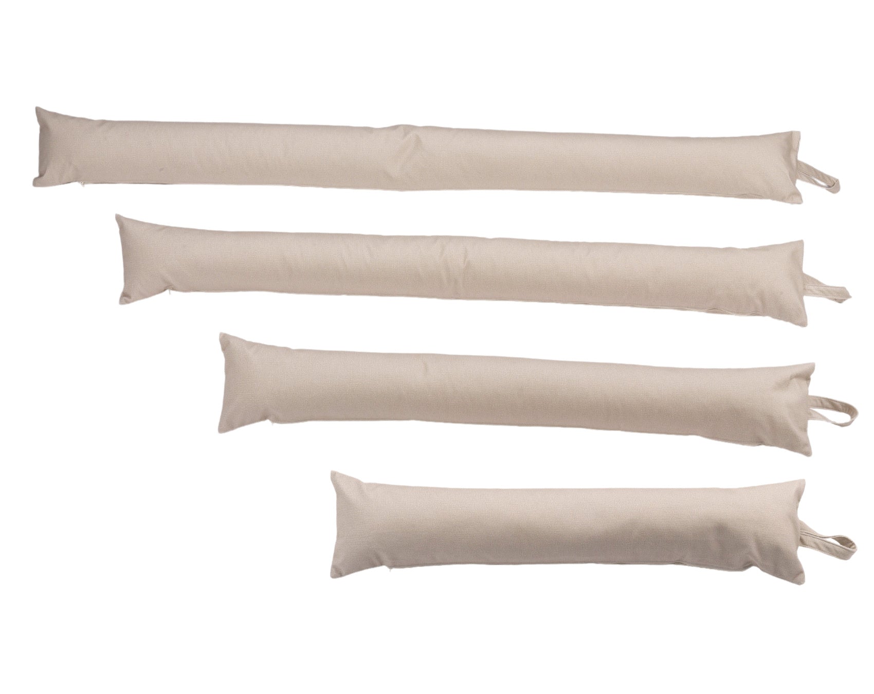 Please note, the length and width measurements are taken prior to filling and are measured from seam to seam when flat. The filled measurement of these draught excluders when filled with the inner cushion may be approximately 2" to 4" shorter depending on the plumpness of the cushion. Therefore please look at buying the next size up if a specific size is required to fill a gap.
