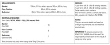 This aran knitting pattern leaflet 5959 by King Cole will instruct you on how to create a cable knit blanket, floor cushion and bed runner.