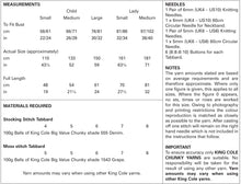 - Details: This is a King Cole knitting pattern that instructs you how to knit a moss or stocking stitch tabbard suitable for girls or ladies, using Big Value Chunky yarn.