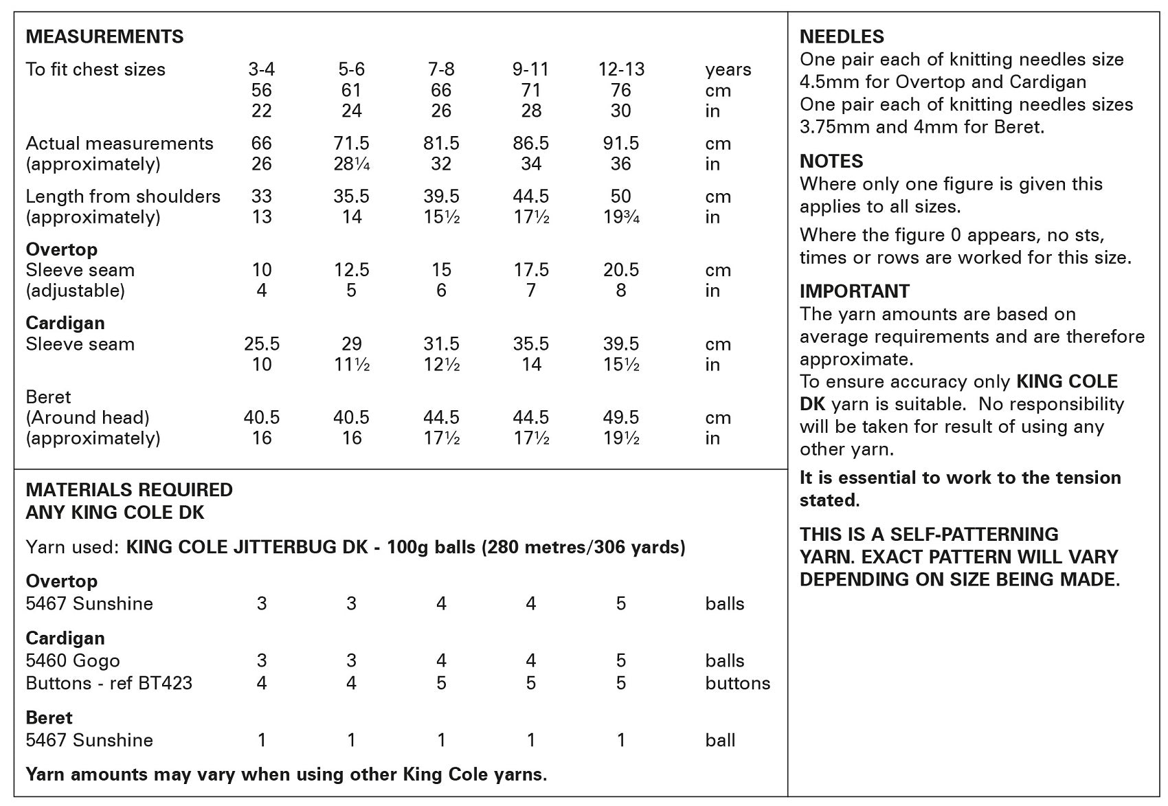 This King Cole knitting pattern is suitable for use with most King Cole double knit yarns; however, tensions may vary, and we recommend you knit a tension square before knitting the whole garment.