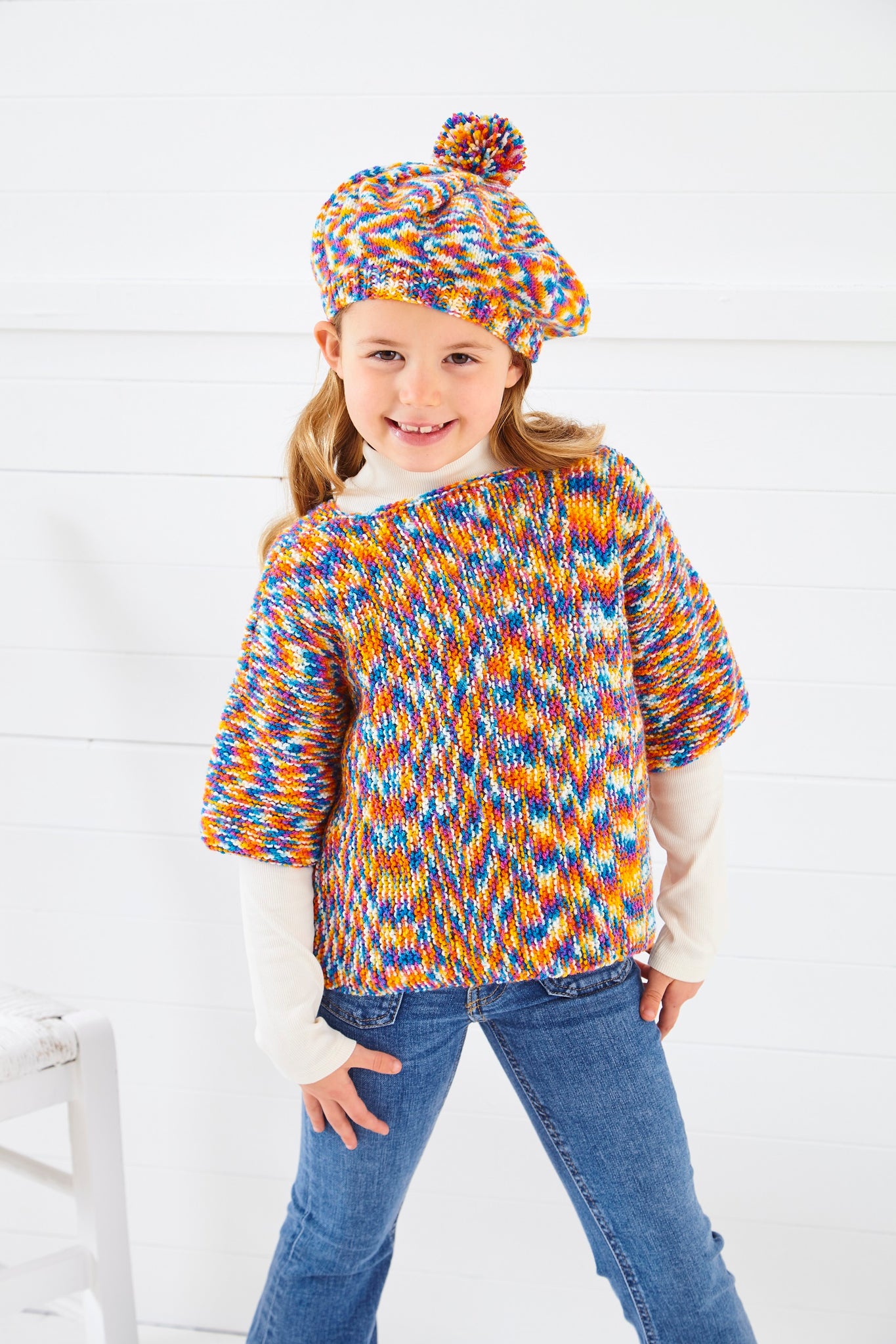 This double-knit knitting pattern leaflet (6139) by King Cole will instruct you on how to create a child's retro overtop, cardigan & beret.