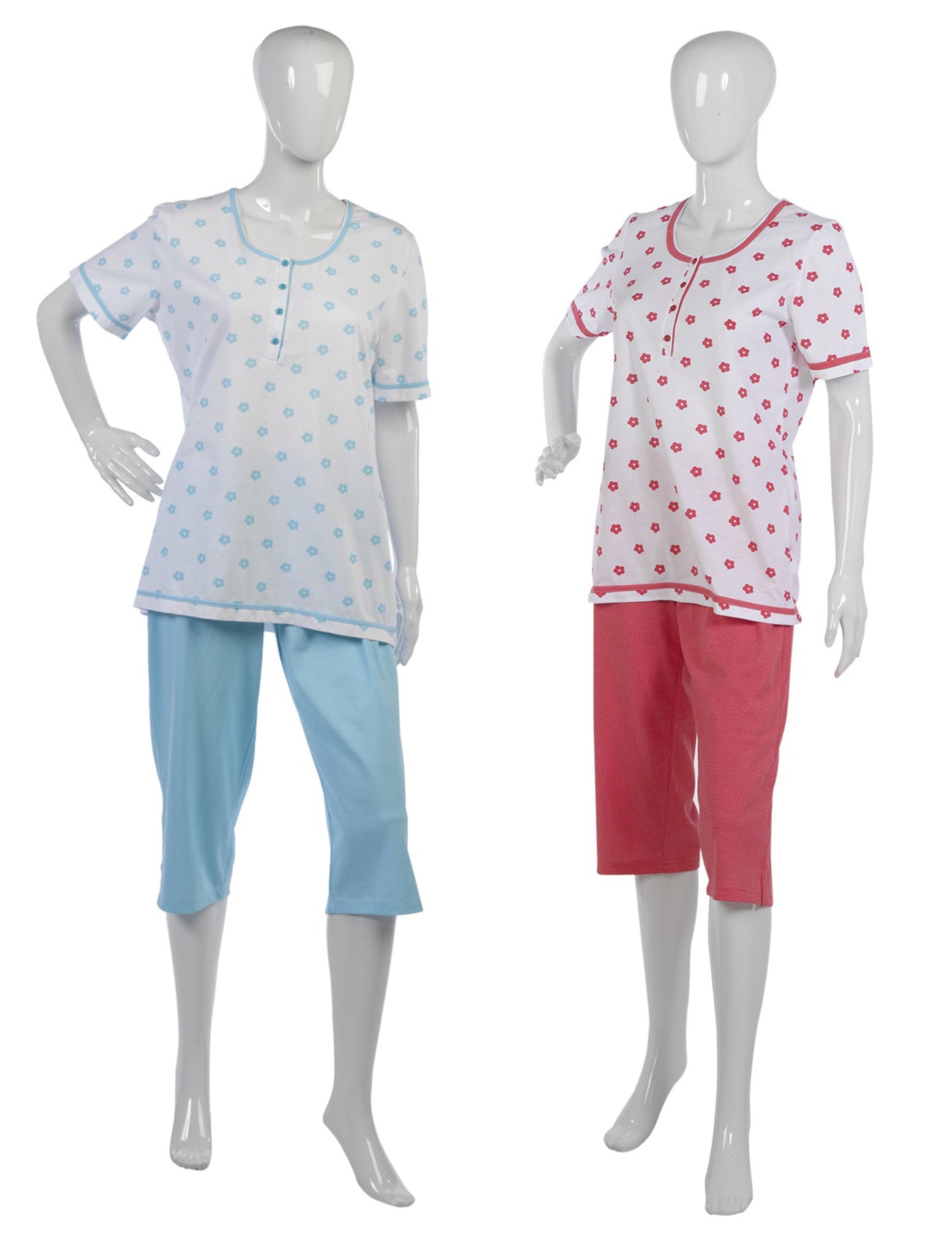 • Details: These ladies pyjama sets include a short sleeved flower top and 3/4 length polka dot bottoms. They're the perfect lightweight option for keeping you cool during the warmer months.