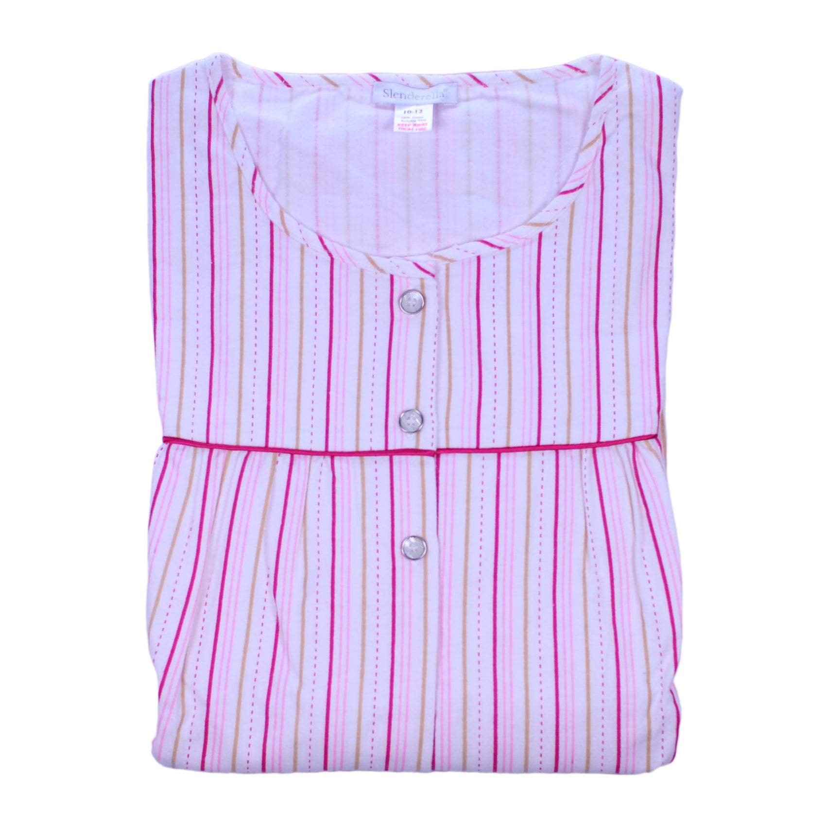 These ladies long sleeved striped night dresses and are approximately knee length.